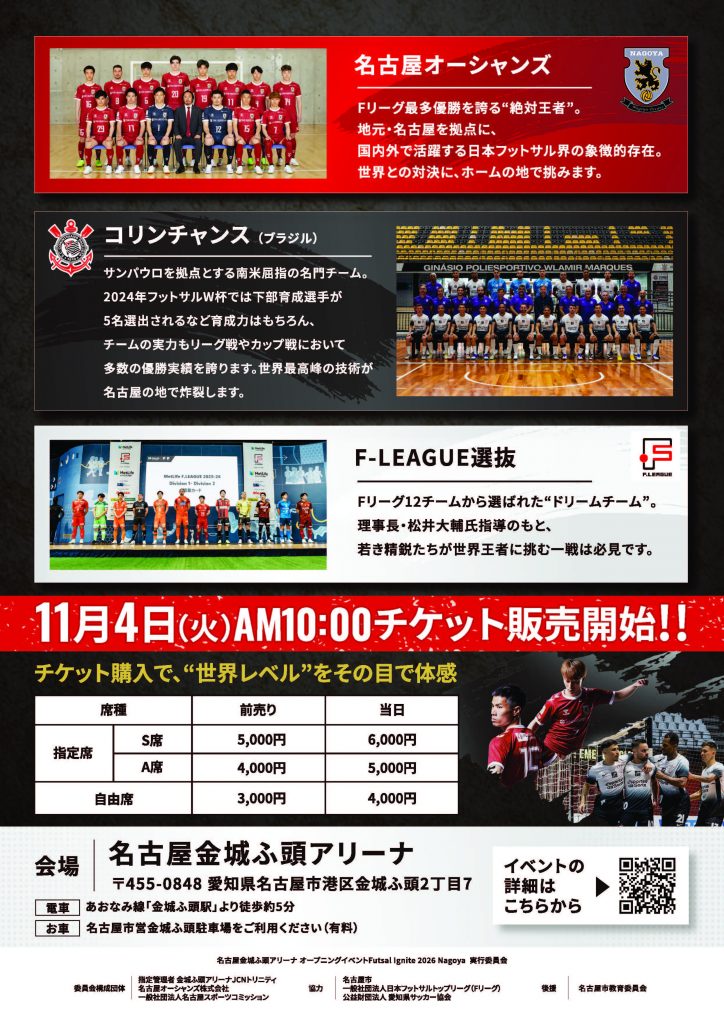・2026年1月10日(土)15:00〜 名古屋オーシャンズ vs コリンチャンス(ブラジル)