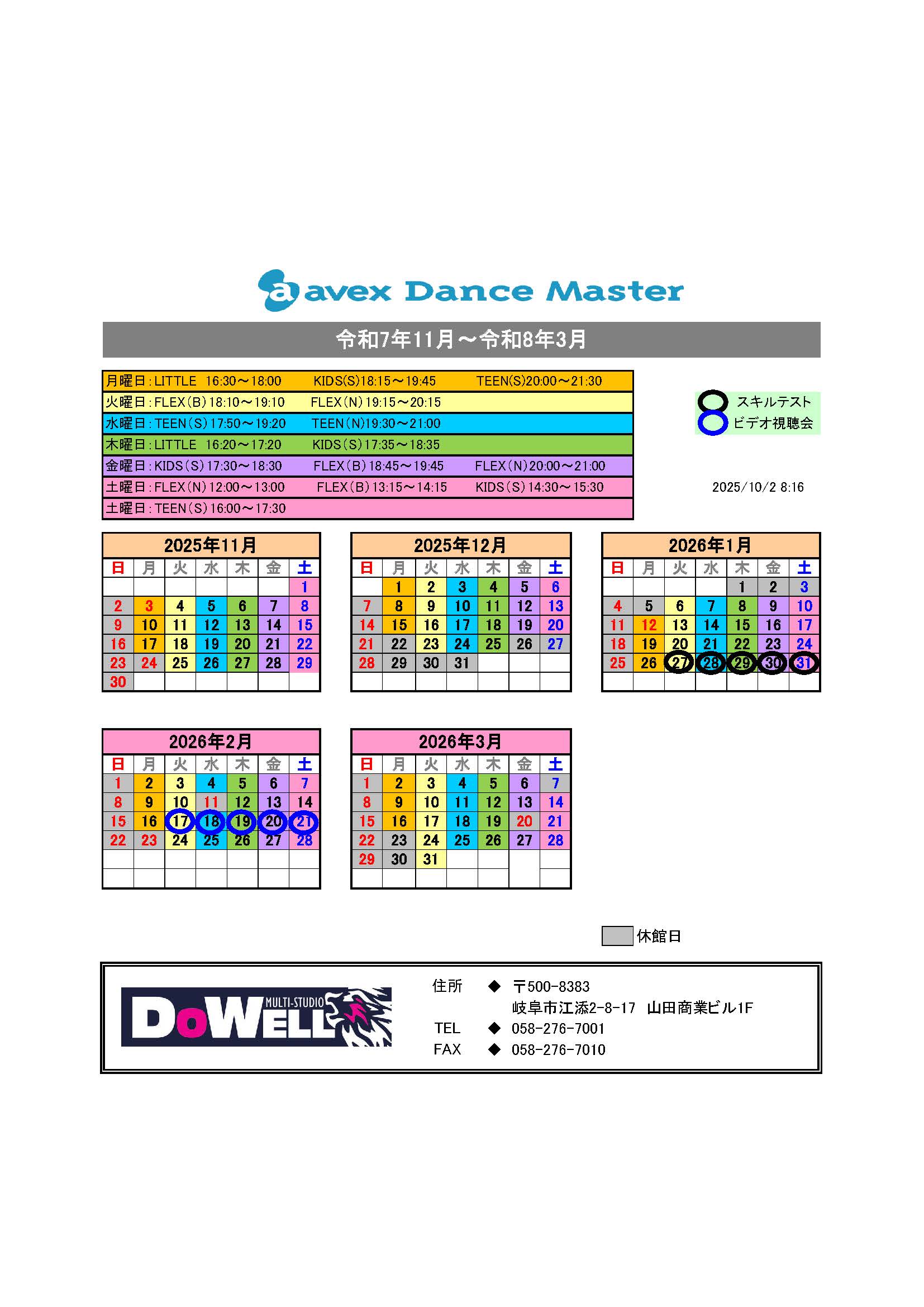 TOPICS 最新ドゥエル岐阜レッスンスケジュール