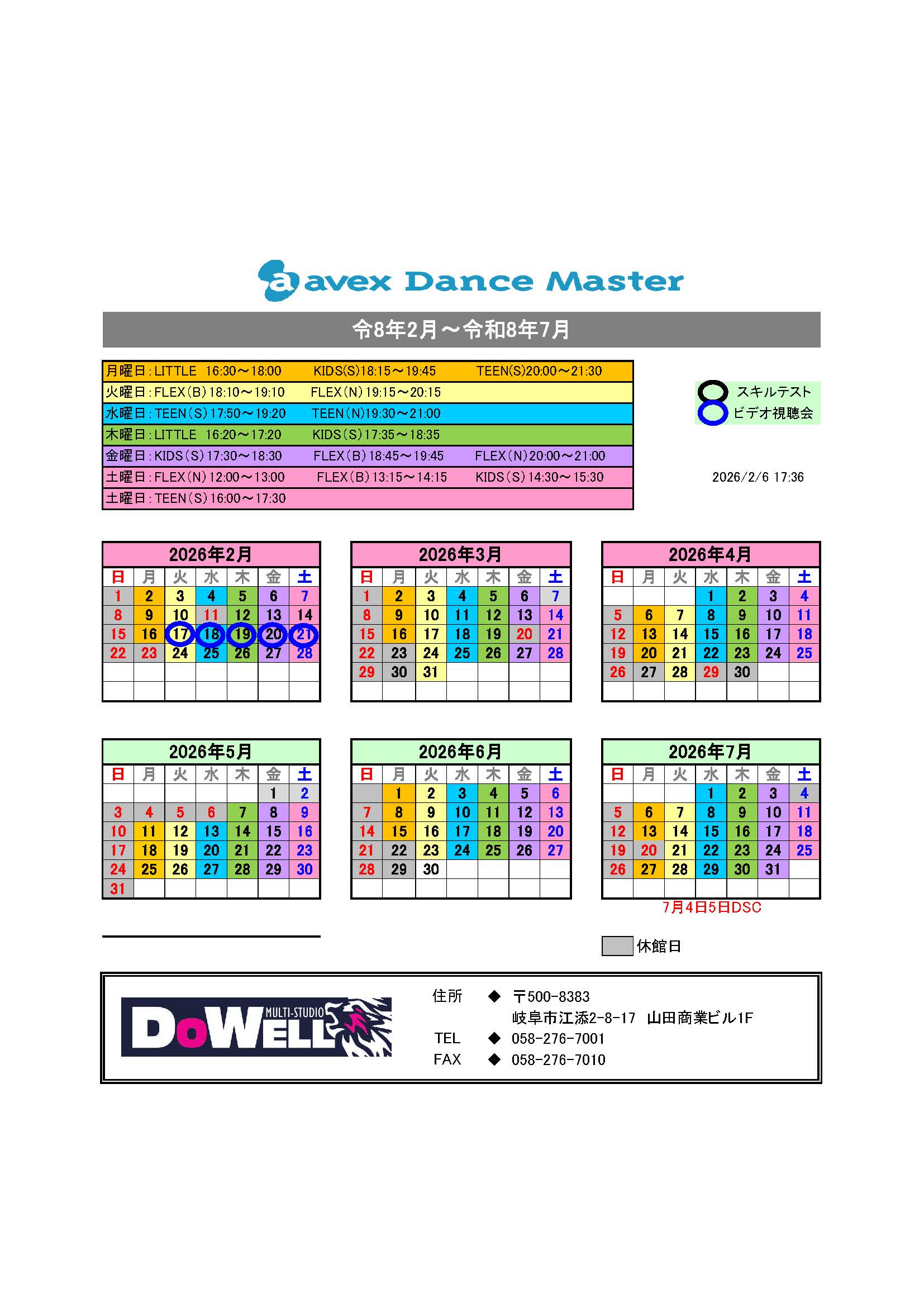 2025/10/21 TOPICS 最新ドゥエル岐阜レッスンスケジュール